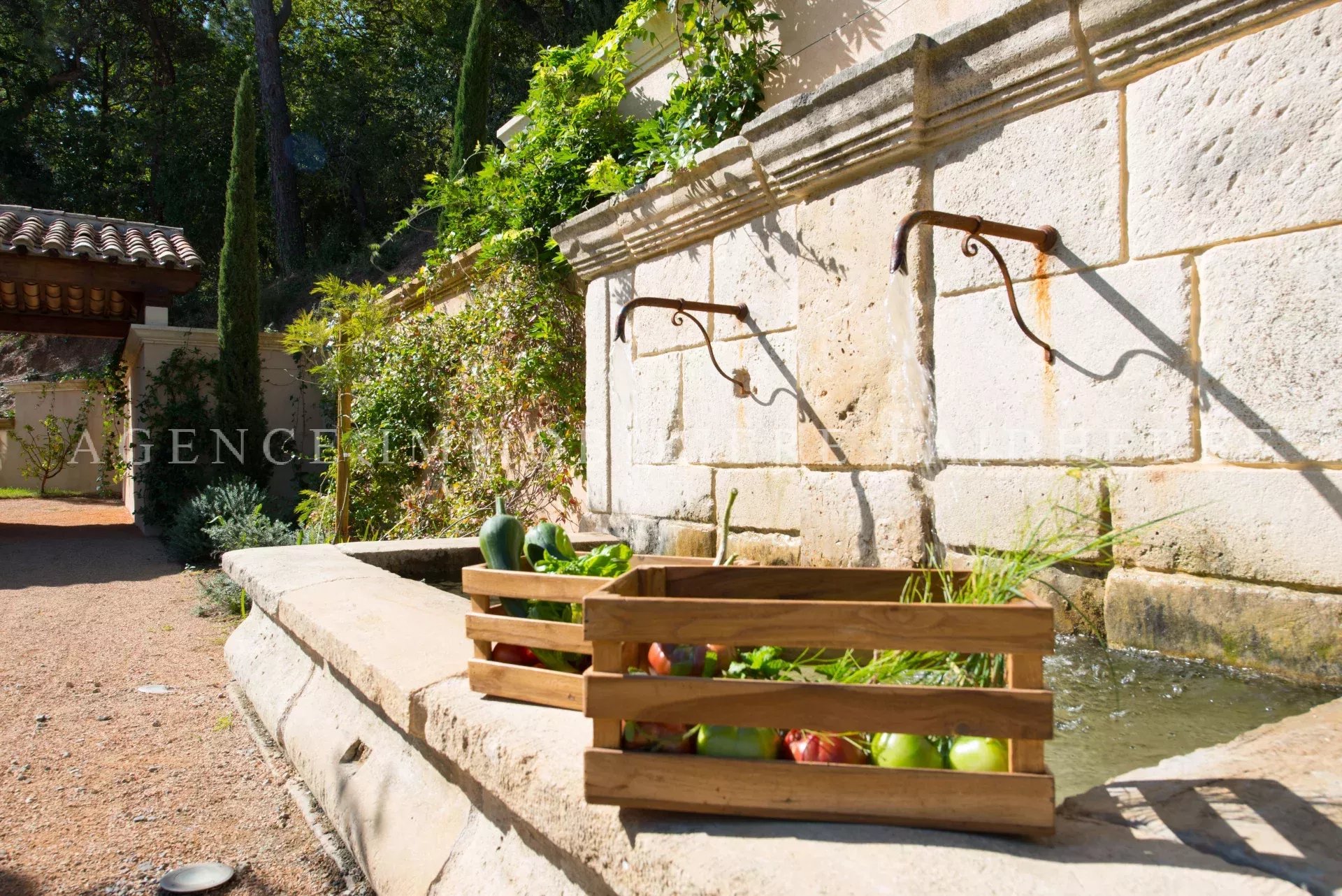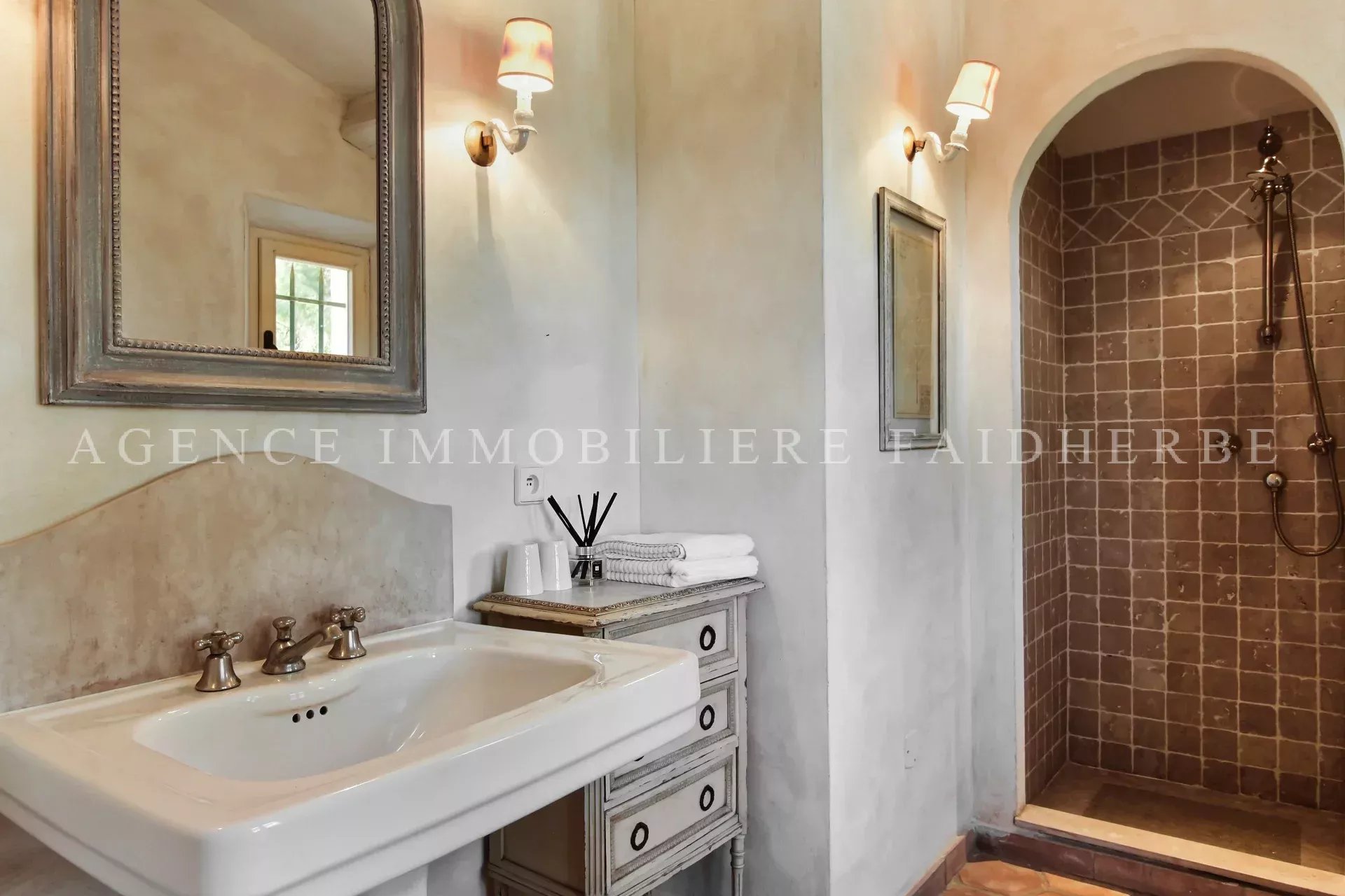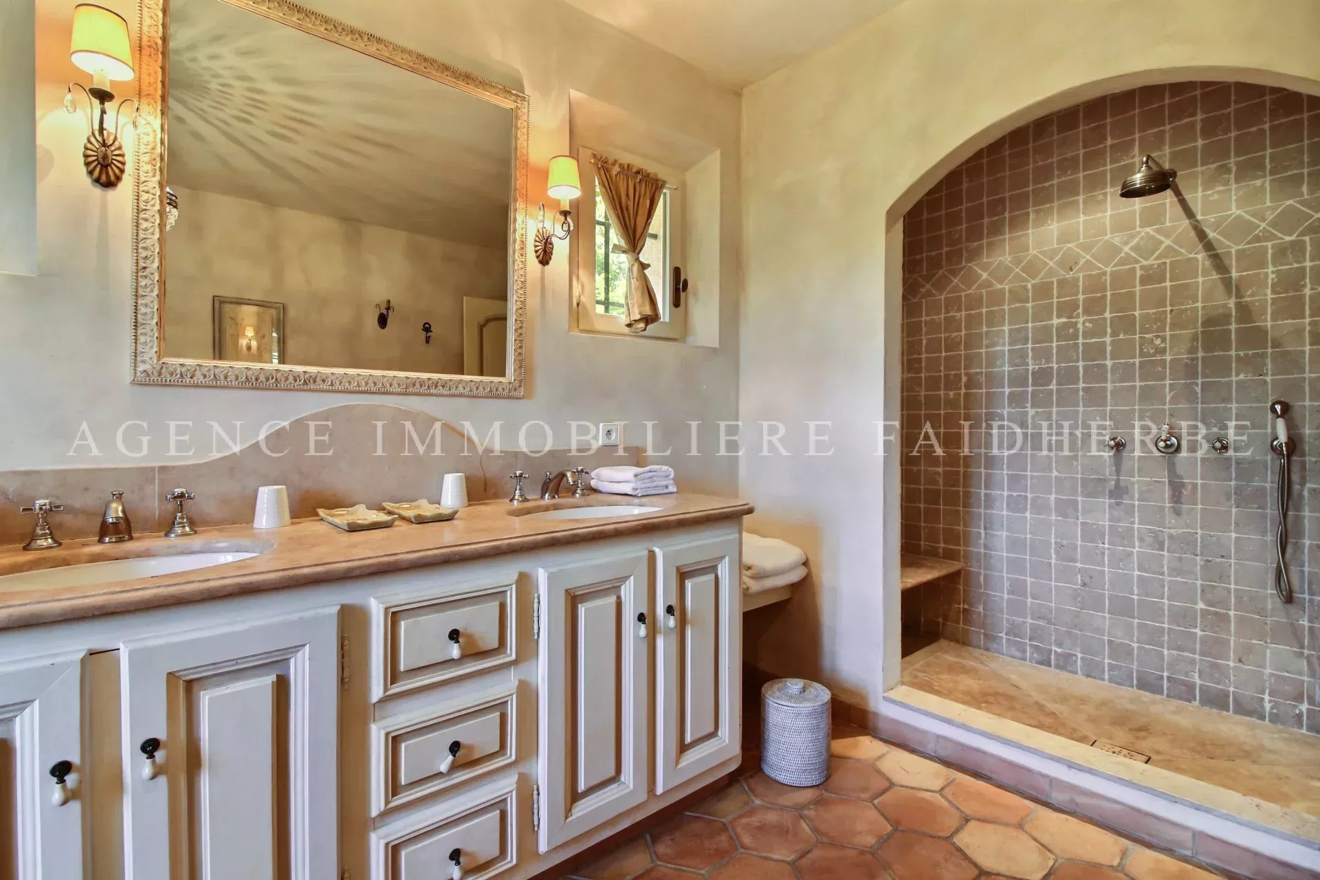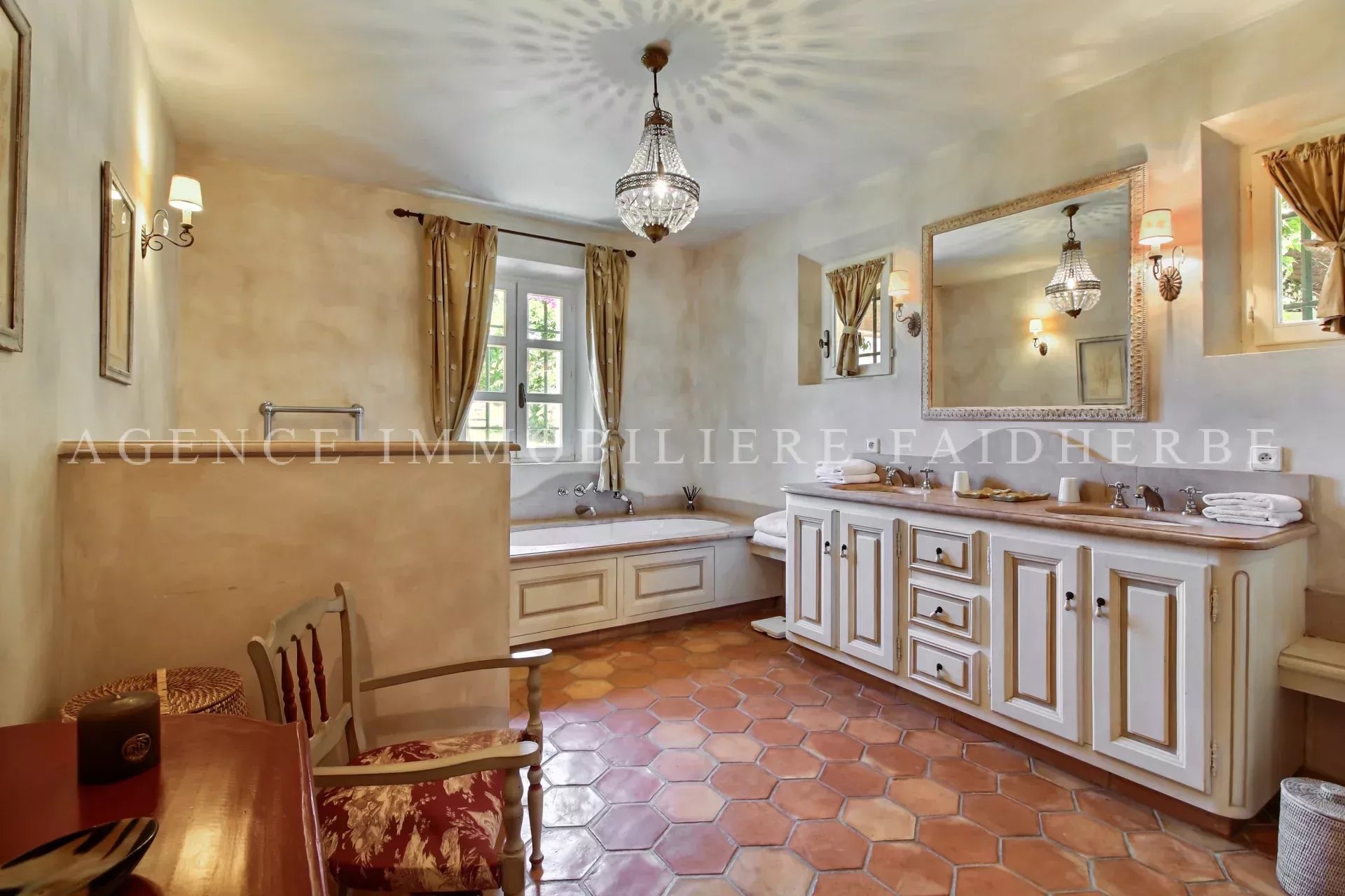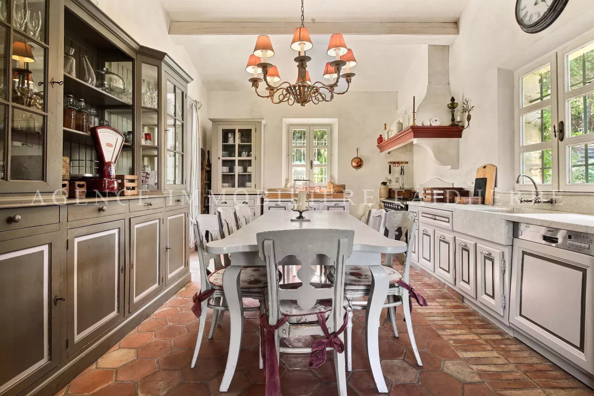 Découvrez cette sublime villa provençale, avec ses 6 chambres avec salle de bain attenante, ses espaces de vie, sa cuisine provençale équipée de manière semi-professionnelle, sa piscine, ses espaces de détente et son parc somptueux.