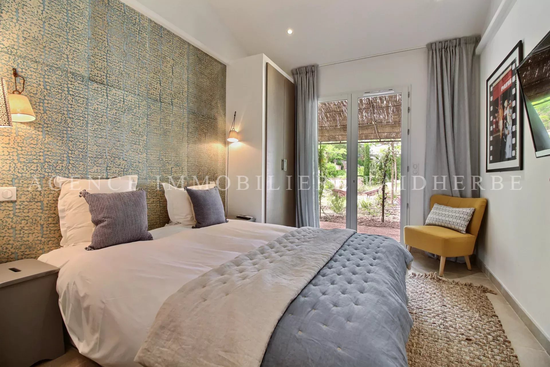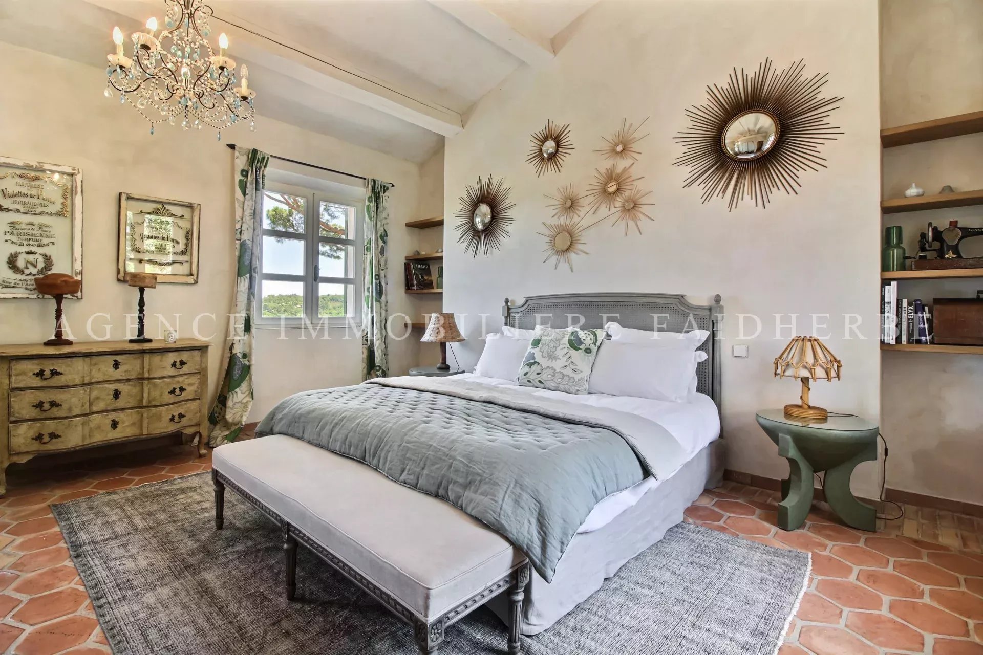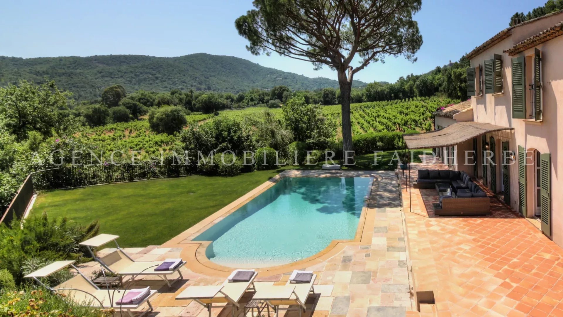 Située au milieu des vignobles du Château de Minuty, cette sublime propriété provençale, restaurée avec beaucoup de goût, nichée dans un parc paysagé de 5,000m2, n’a que comme unique voisin les vignes alentours !