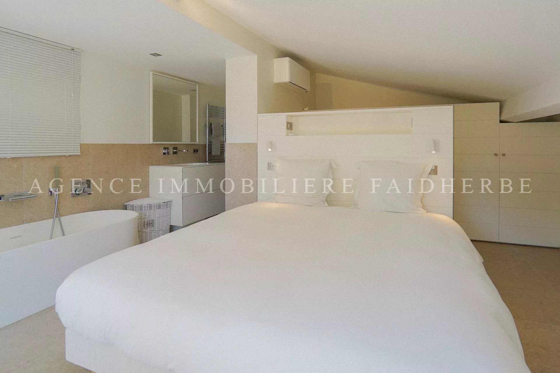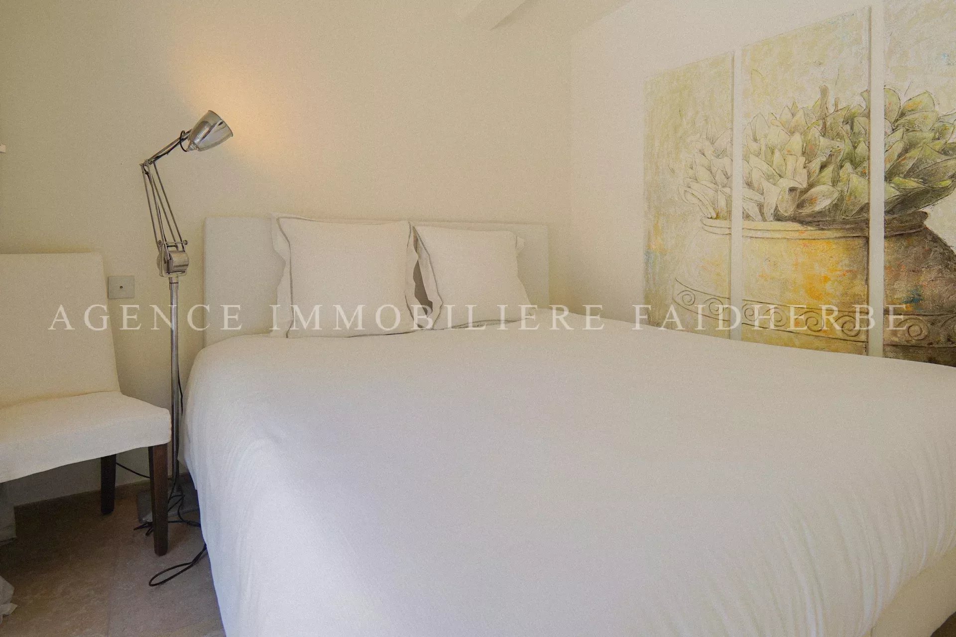 In un primo padiglione indipendente si trovano due camere da letto con bagno privato, una delle quali si apre su una terrazza con vista sulla baia di Pampelonne.