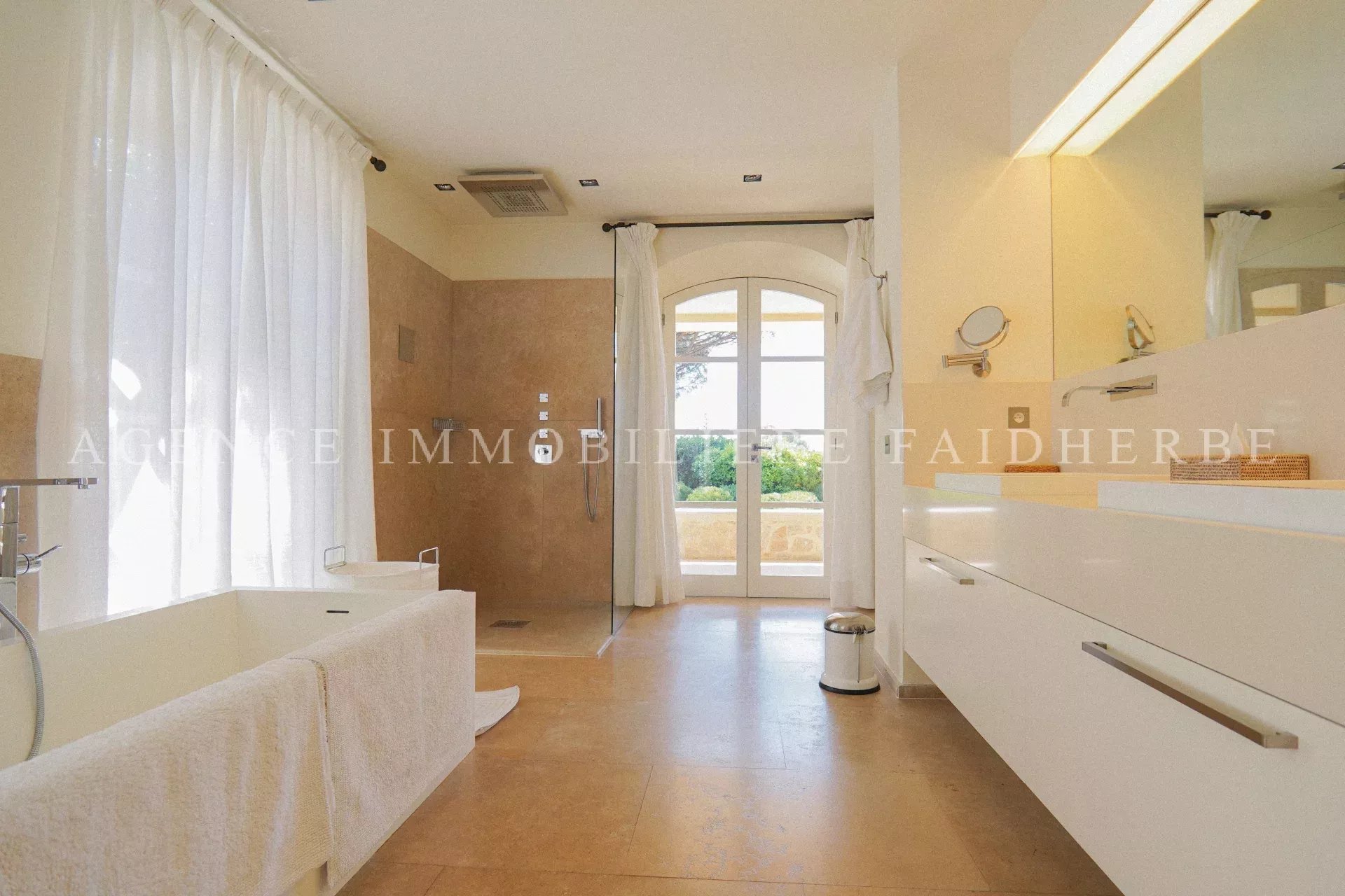 Affacciata sulla baia di Pampelonne, in una tenuta ricercata e sicura, questa superba villa provenzale di 350 m², completamente ristrutturata, sorge su un terreno di 2000 m² splendidamente piantumato con una piscina di 5x11 m.